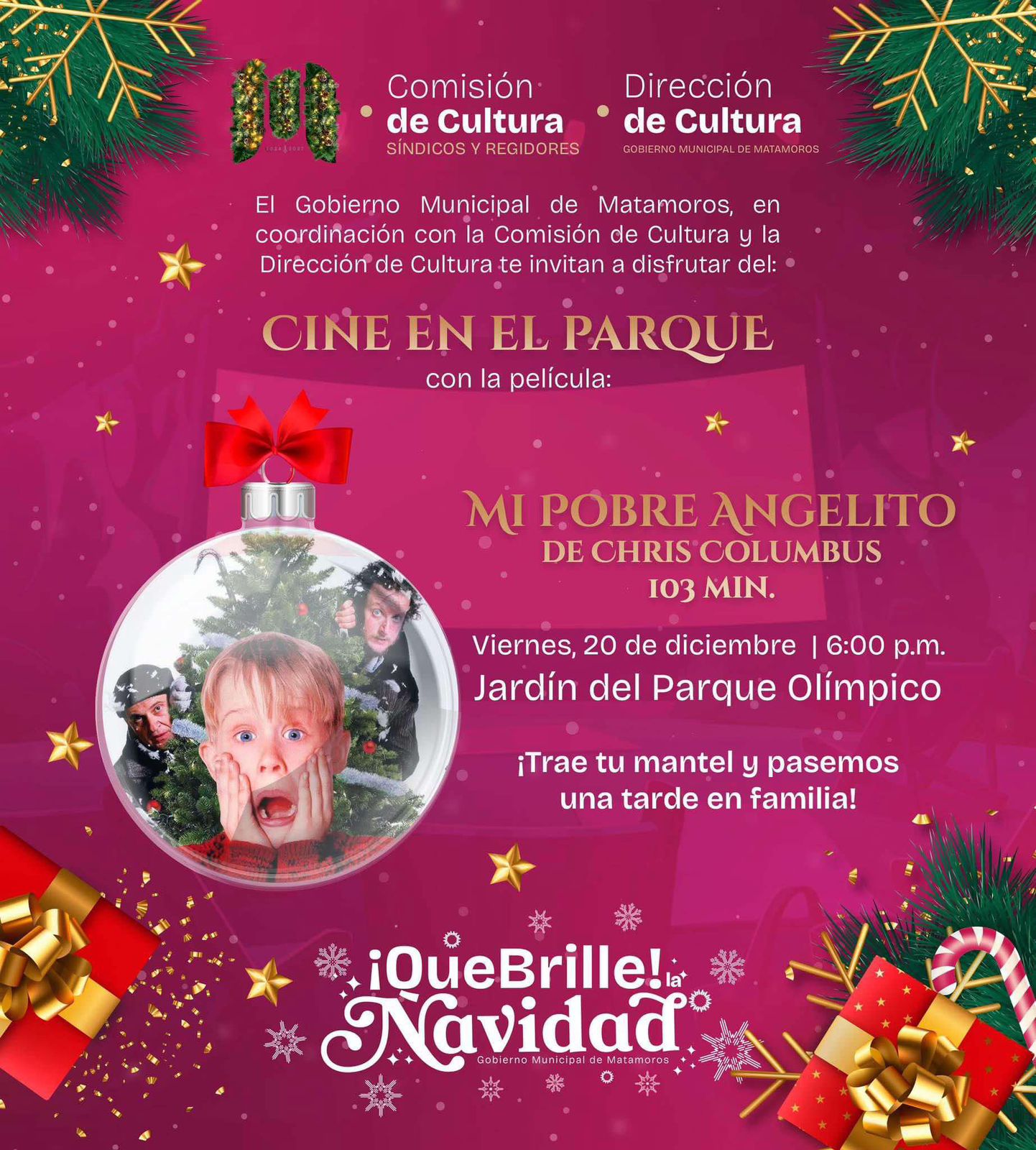 El gobierno de Matamoros Tamaulipas, a través de la dirección y Comisión de Cultura Municipal, te invita a la función de cine, donde se proyectará en el Parque Olímpico, la película «Mi Pobre Angelito».