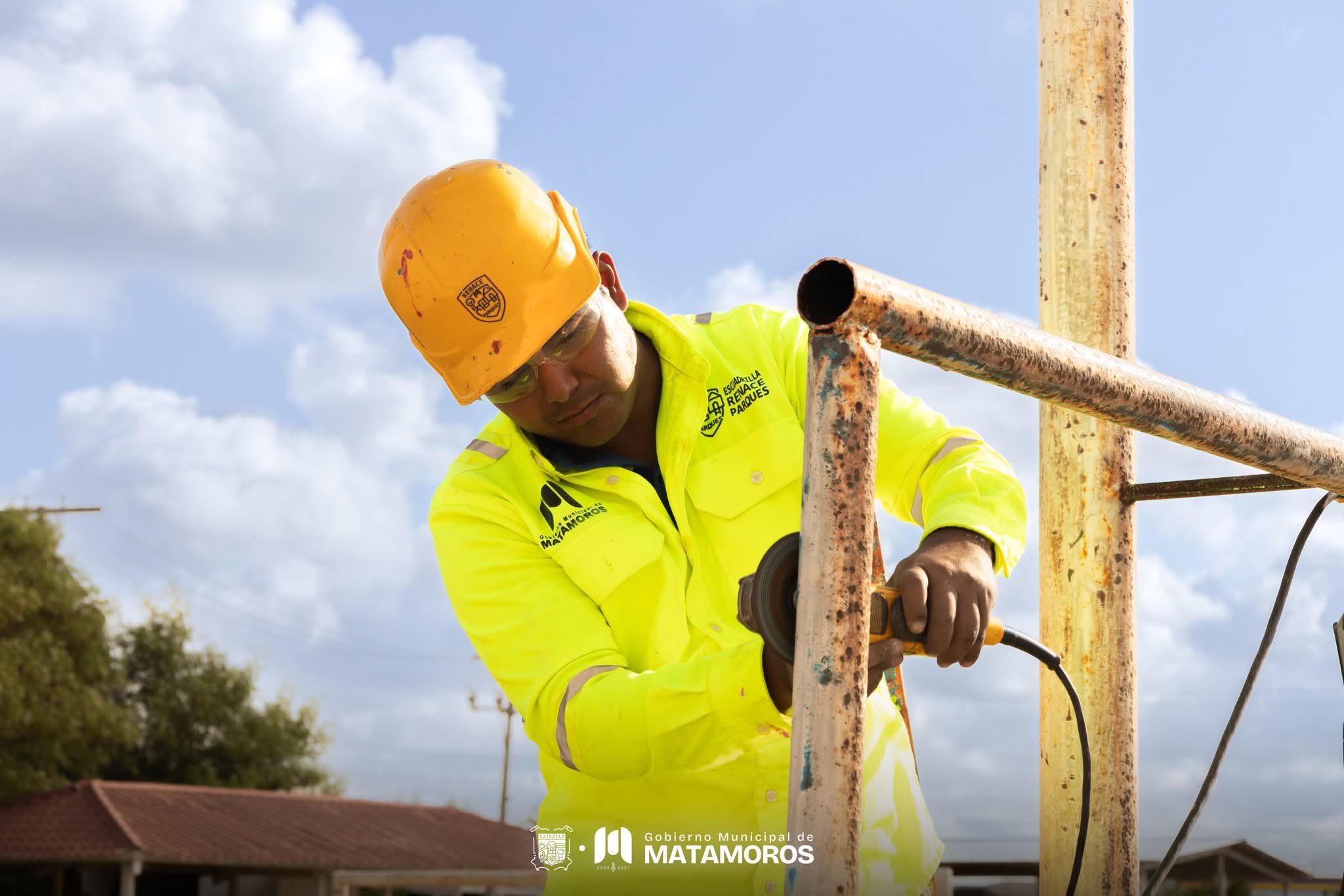 Matamoros, Tam.- Gobierno de Beto Granados informó que la cuadrilla Renace puso manos a la obra en el DIF Quinta Real, donde se llevó a cabo la rehabilitación del área verde y la renovación de los juegos infantiles.