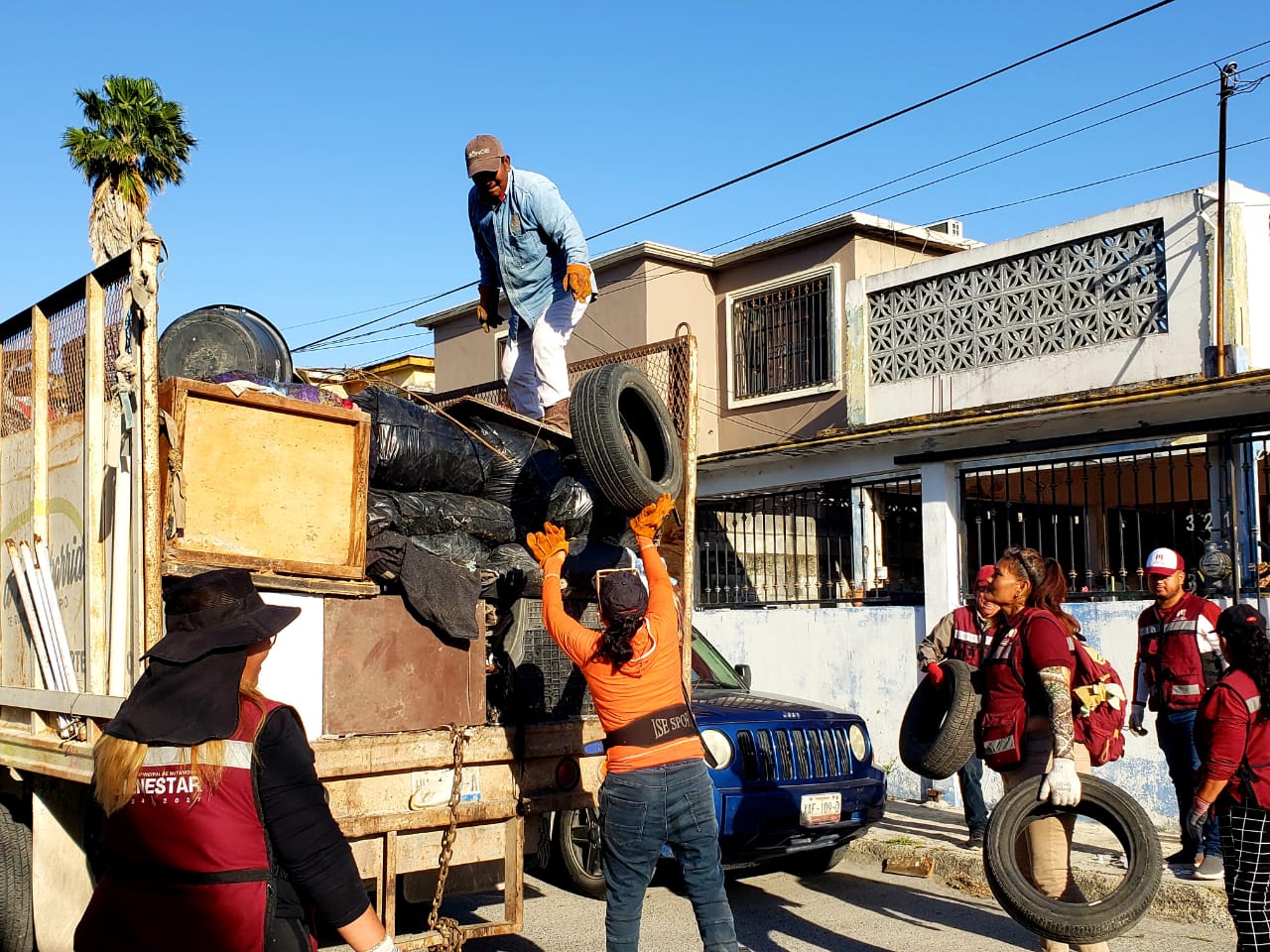 H.Matamoros, Tamaulipas.- El Gobierno de Matamoros, a través de la Secretaría de Bienestar Social y la Secretaría de Servicios Públicos, llevó a cabo este miércoles la jornada del programa «Descacharrización para el Bienestar» en la colonia Buenavista. Esta iniciativa, impulsada por el alcalde Beto Granados, busca mejorar el entorno urbano y contribuir a la salud pública.