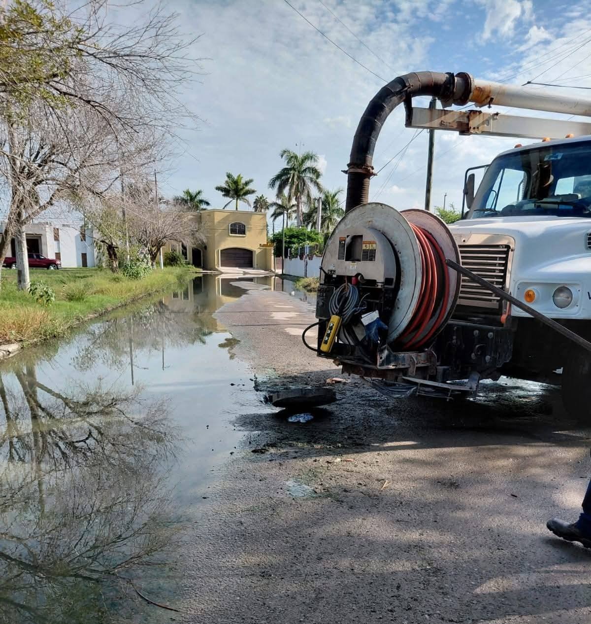 H. Matamoros, Tamaulipas.- El gobierno de Matamoros que preside el alcalde, Beto Granados, a través del personal del área de vactor trabajó en la colonia Magisterial CBTIS.