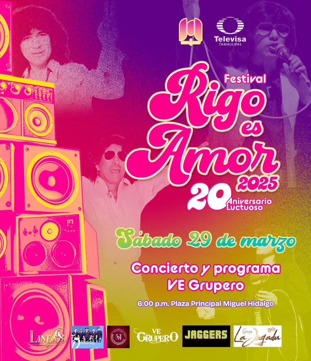 H. Matamoros, Tamaulipas.- En el marco del 20° aniversario luctuoso de Rigo Tovar, el Gobierno Municipal de Matamoros rendirá homenaje a la icónica figura de la música tropical con un magno concierto y un programa especial de VE Grupero.