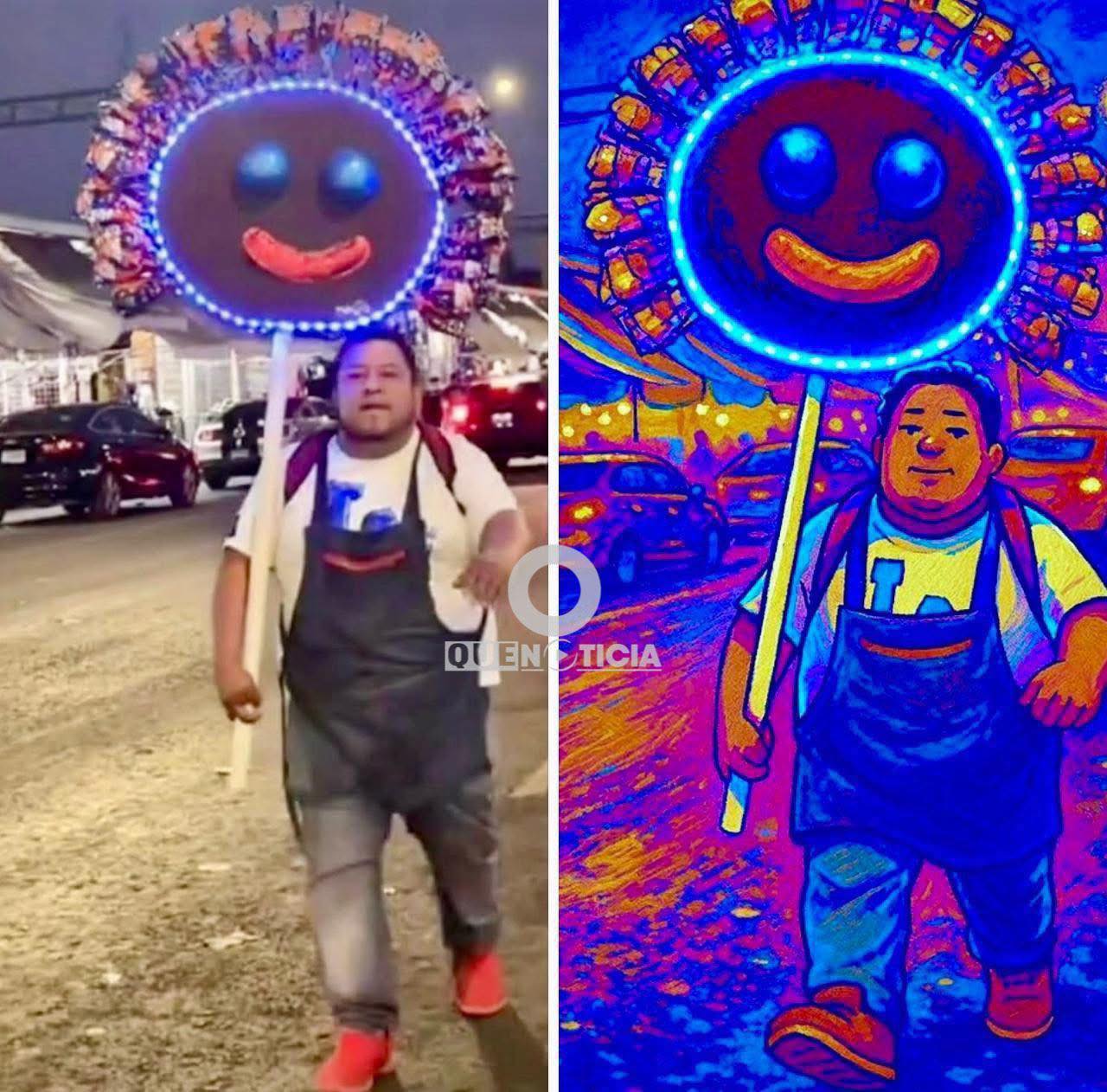 Construyó una paleta Payaso gigante, iluminada con luces que brillan a cada paso, y la usa como anuncio mientras recorre las calles ofreciendo su producto. Lo que comenzó como una idea sencilla se volvió un imán de miradas: la gente se detiene, sonríe, pregunta… y compra.